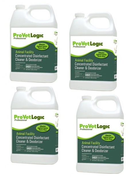 This product contains (4) one-gallon containers. The ProVetLogic Animal Facility Animal Disinfectant provides over 50 infectious agent kill claims including MRSA, Ringworm, Salmonella, E-Coli, Avian Influenza, Canine Parvovirus, Kennel Cough and more.