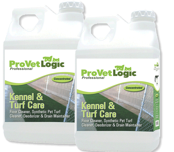 Save on Two 2.5 gallon bottles of Kennel and Turf Care Floor Cleaner, Deodorizer and Drain Maintainer, which uses patent-pending technology that effectively removes stains and soils from kennel floor and other porous surfaces.