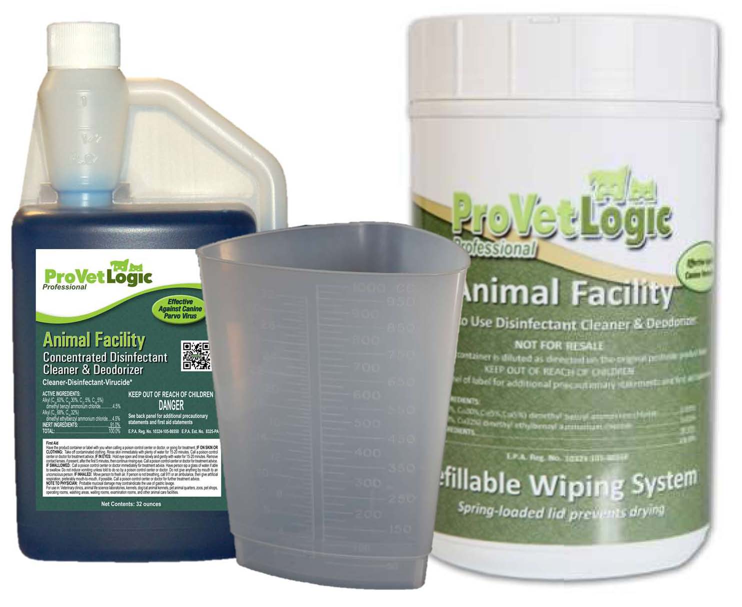 The Animal Facility Disinfectant AcuPro Kit provides a safe, effective, and economical alternative for cleaning and disinfecting most hard nonporous surfaces.- The AcuPro 32-Ounce precision pour bottle produces up to 32-gallons of ready-to-use disinfectant, effective against a wide range of infectious agents including Canine Parvovirus, Canine Distemper, Kennel Cough, Feline Panleukopenia, Feline Calicivirus, Ringworm and more.